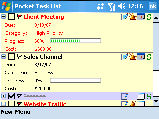 Софтверная компания PDAGear представила новую программу, Pocket Task List, которая представляет собой очередной менеджер задач с более широкой функциональностью, чем у стандартного Outlook Tasks. Производителем заявлена поддержка всех устройств, работающих под управлением Windows Mobile. Отличительной особенностью программы является способ отображения задач, предоставляющий хороший компромисc между компактностью и информативностью: подробные данные для каждой задачи можно свернуть или развернуть одним прикосновением стилуса. Так же интересно, что задачи можно разбить на категории, которые являются не просто дополнительной характеристикой, а реальным средством группировки, так как в программе есть гибко настраиваемые фильтры. Также, среди характеристик задач присутствуют дата завершения, напоминание (которое можно настроить на любое время, никак не связанное с датой завершения), цена (в долларах), процент выполнения, флаг приоритета и многострочные текстовые примечания. Когда подробности не видны, самые важные из них отображаются в виде иконок в строке с названием задачи. Напоминания появляются в стандартных всплывающих сообщениях. Очень радует, что наряду с возможностью импорта задач из Outlook Tasks, присутствует и возможность экспорта задач обратно в Outlook Tasks. Программа продаётся за $9,95. Как обычно, в ближайшее время, версию Pocket Task List можно будет найти в разделе "Программы для КПК" на HPC.ru.
