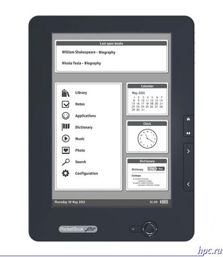 Казалось бы, электронный ридер с экраном больше привычных 5-6 дюймов будет неудобным – слишком уж большим получится такое устройство, да и найти ему сферу применения будет непросто. На самом же деле это не так. Рассмотрим в качестве примера ридер газетного формата PocketBook Pro 912 Education с 9,7-дюймовым дисплеем (как у того же iPad). Конечно, в транспорте или на природе читать с такой "махины" не очень удобно – ее габариты и вес все же отнюдь не маленькие. Но при использовании ридера как учебника или офисной "читалки" каждый сможет оценить его преимущества: на экране такого размера гораздо приятнее просматривать интернет-страницы, схемы и изображения, да и простого текста помещается гораздо больше – придется реже перелистывать страницы. Читайте новый обзор в библиотеке HPC.ru: Электронный ридер величиной с лист формата А4: PocketBook Pro 912 Education
