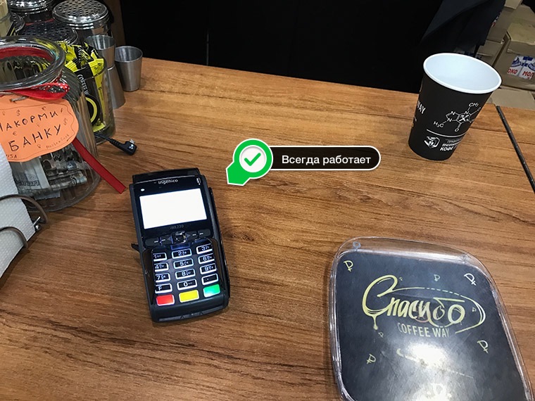 Объясняю ей, что оплатил фактически картой, но беспроводной, и что терминал её поддерживает. Пауза. А за мной нормальная такая очередь.