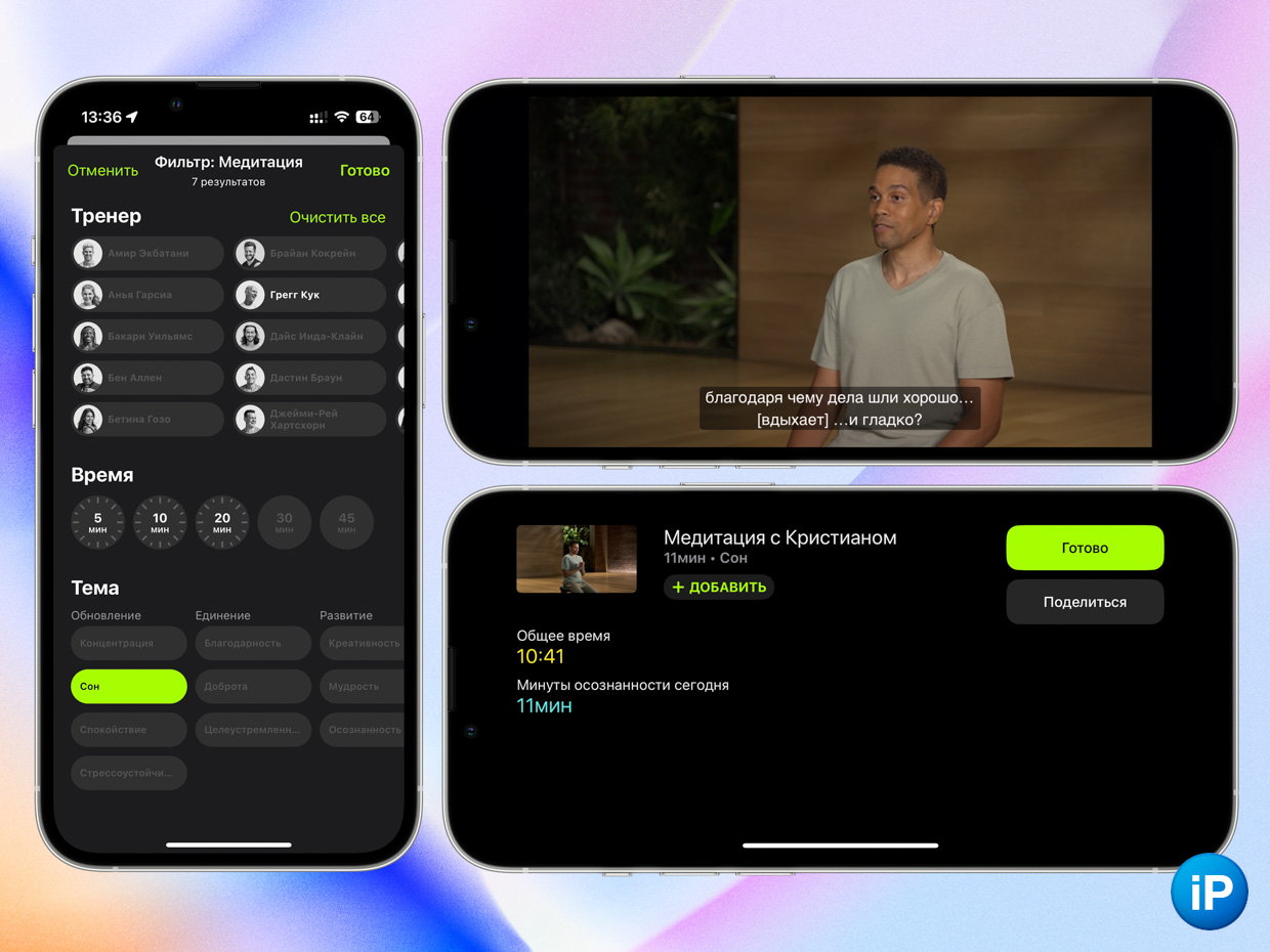 От медитации с условной Алисой от Яндекса отличается сильно, хотя и та полезна. В Fitness+ вас уводят на слой ниже, чем в бесплатных источниках.