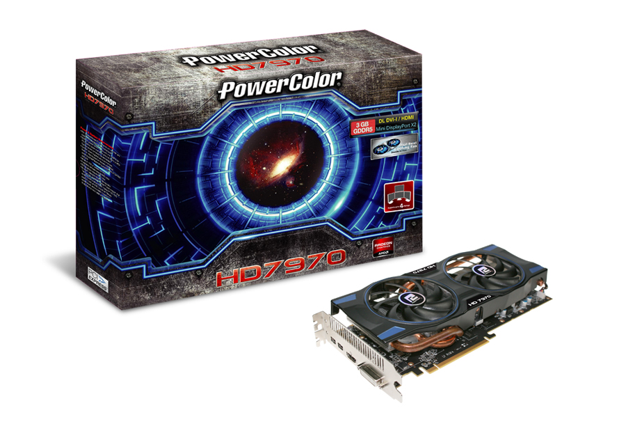 Компания TUL Corporation, владеющая брендом PowerColor, официально представила пополнение в своем ассортименте в виде новой версии флагманского адаптера AMD Radeon HD 7970, имеющей ряд отличий от эталонной модели. Прежде всего, стоит отметить нереференсный кулер с двумя 92 мм вентиляторами и как минимум тремя медными теплоотводными трубками, который, как сказано, функционирует на 10 процентов эффективнее и на 15 процентов тише стандартной системы охлаждения.