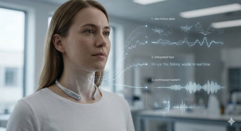 Технология основана на том, что речь — это не только звук. Даже при беззвучной артикуляции мышцы и кожа в области шеи совершают микродвижения, формируя характерные паттерны, соответствующие произносимым словам. Чтобы фиксировать эти движения, команда создала мультиосевой сенсор деформации.