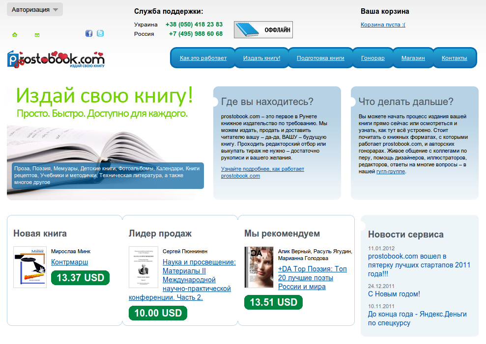 Книжки имеются в виду настоящие, бумажные. Prostobook.com принимает на входе законченный макет, а на выходе предоставляет готовые тома с настоящим ISBN. Читать их будет не так удобно, как iPad, но зато они всё ещё престижнее, хорошо смотрятся на полке, и их можно подписывать на встречах с читателями.