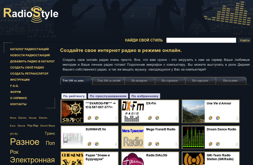 Сервис RadioStyle позволяет любому желающему сделать собственную радиостанцию. Не просто подборку музыки, транслируемую через сеть, а полноценное радио. С речёвками диджеев, рекламными вставками, приёмом звонков от телезрителей и заказами песен, но при этом с вещанием 24 часа в сутки.