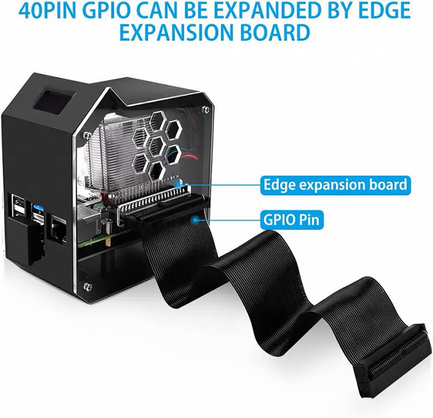 В комплект также входит карта расширения для твердотельного накопителя M.2 2280 емкостью до 2 ТБ. Есть и адаптер GPIO для поворота на 90 градусов.
