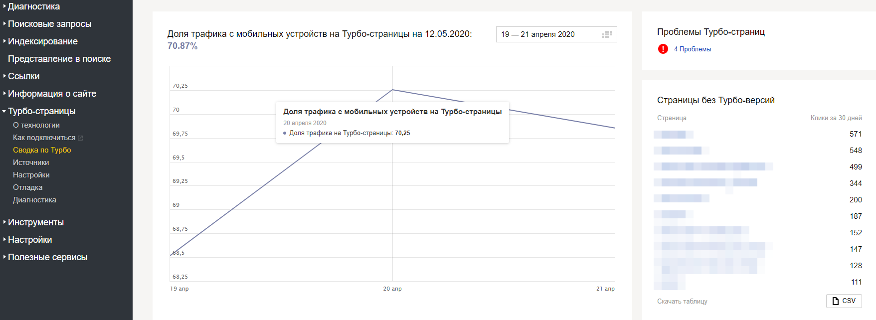 В предыдущих постах мы спрашивали вас, как улучшить Турбо-страницы. Спасибо всем, кто поделился обратной связью. Мы изучили ответы и поняли, что многим интернет-магазинам и контентным площадкам не хватает сводной статистики. Теперь она появилась — в новом разделе Вебмастера «Сводка по Турбо». Раздел поможет вам ответить на вопросы: