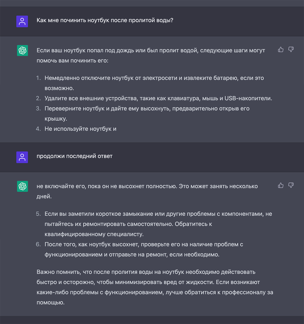 Разбираем вот такой вопрос. На русском языке ChatGPT часто прерывает ответ, но его всегда можно попросить продолжить