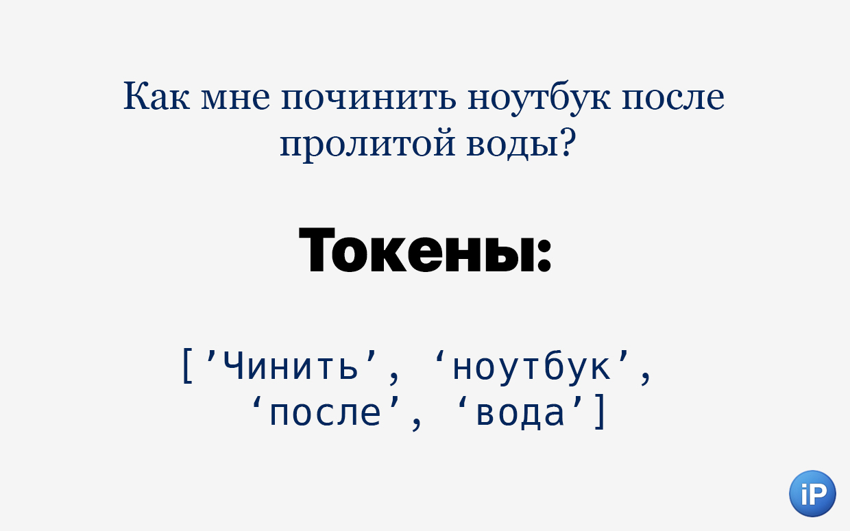 1. Токенизация. Введённый вами текст разбивается на слова и «подслова», то есть отдельные смысловые элементы. Они называются токены. Например, фраза «Как мне починить ноутбук после пролитой воды?» делится на «как», «мне», «по», «чинить», «ноутбук» «после», «про», «лит», «ой», «воды» и »?». Всего 11 токенов из 6 слов.