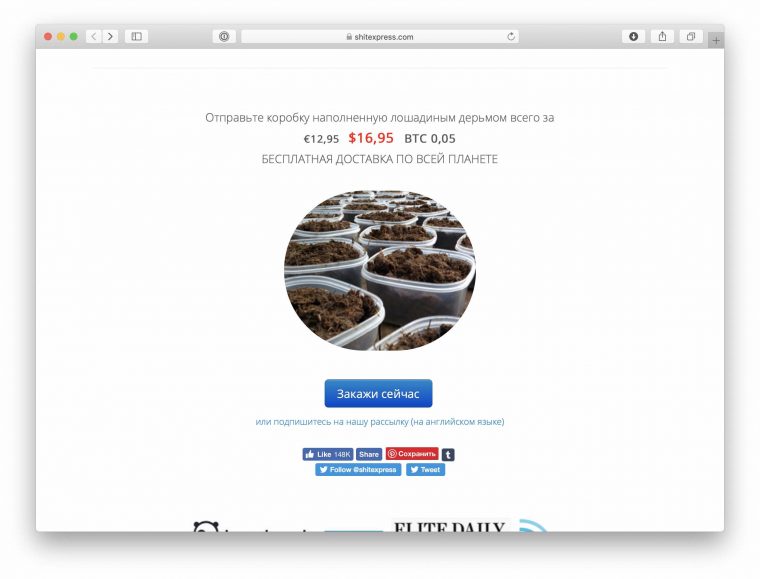 Удивительно, но такой сервис пользуется большой популярностью. Он переведен на большое количество языков, в том числе и на русский. В конце 2017 года команда ShitExpress заработала $100 000, продав более 2000 тонн экскрементов за год.