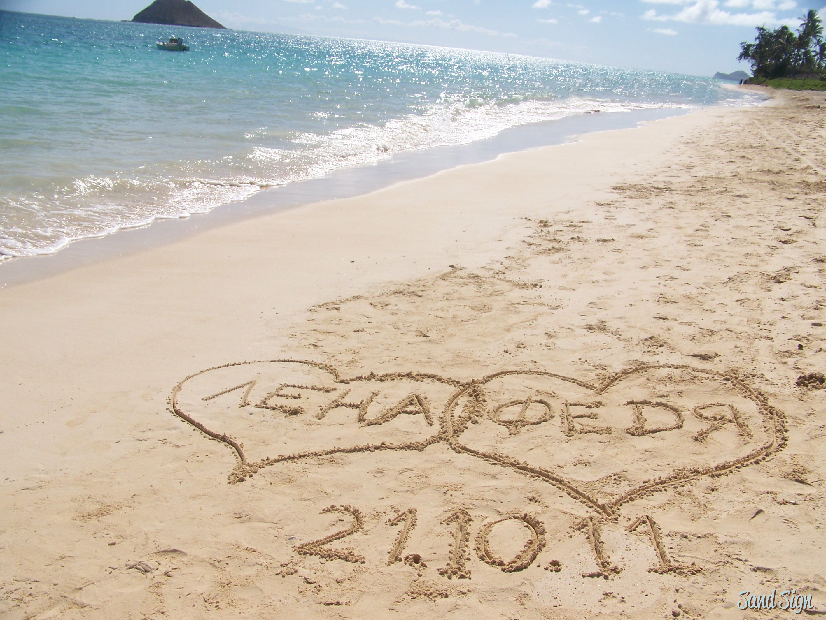 На сайте Sand Sign можно купить фотографию надписи на песке одного из пляжей Гавайев или Коста Рики. На фотографии будет заказанный вами текст. Или даже картинка по вашему эскизу. Комплект из трёх фотографий с разных точек стоит 590 рублей. Думаете дорого? Подумайте ещё раз: скоро День Святого Валентина, День Защитника Отечества, День... "8 марта", короче, и на всё это нужны оригинальные подарки. И потом ещё первого апреля что-нибудь прикольное можно написать. Ребята точно не разорятся.