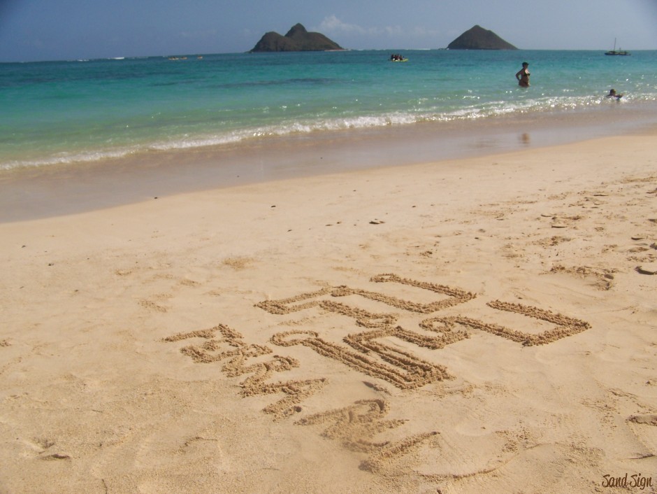 Несколько странно, что гавайские и костариканские пески до сих пор не позиционируются командой Sand Sign как рекламная площадка, для размещения логотипов и веб-адресов под гавайским солнцем. Вот так, например: