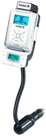 Компания SanDisk продемонстрировала устройство под названием Sansa Car Transmitter, предназначенное для прослушивания музыки, воспроизводимой MP3 плеером SanDisk Sansa, через автомобильный радиоприемник. Адаптер позволяет автомобилисту в любой момент воспользоваться огромной музыкальной библиотекой, которая может содержать до 48 часов музыки в формате MP3 или до 96 часов в формате WMA. Sansa Car Transmitter состоит из одного компонента и «подружить» его с автомобильным FM приемником очень просто. Для начала нужно определить, на какой частоте сигнал, передаваемый радиостанцией, является самым слабым. Затем ту же самую частоту необходимо установить в настройках трансмиттера. Всего устройство может запомнить три разные частоты, переключаться через которые можно специальными клавишами, контролируя процесс по ЖК экрану с голубой подсветкой. Трансмиттер может передавать сигнал на любой частоте FM диапазона: от 88.1 до 107.9 МГц, получая электроэнергию от автомобильной сети, подключение к которой осуществляется через разъем прикуривателя. В американскую продажу трансмиттер от Sandisk поступит до конца года, приобрести его можно будет по цене $59.99.