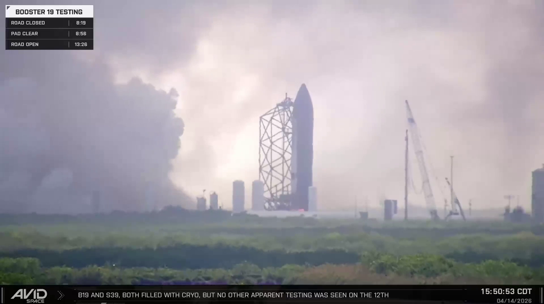 Скриншот видео Avid SpaceПо предварительным наблюдениям, сначала в тесте могли работать все 6 двигателей Raptor 3, а затем — только 3 центральных почти в течение минуты, как это уже было на длительных прожигах предыдущей версии V2. Если данные подтвердятся, это будет один из ключевых этапов подготовки к следующему запуску.