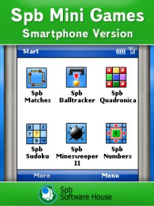Компания Spb Software House объявила о выпуске пакета интеллектуальных мини-игр в версии для смартфонов на базе Windows Mobile. Он состоит из 6 игр: Spb Sudoku, Spb Numbers, Spb Quadronica, Spb Minesweeper II, Spb Matches и Spb Balltracker. Spb Sudoku: реализация широко известной игры Судоку. Цель игры — заполнить игровое поле цифрами таким образом, чтобы каждый ряд, каждая колонка и каждый квадрат три на три содержал цифры от 1 до 9 без повторений. Spb Numbers: довольно оригинальная и увлекательная игра. Цель игры — очистить игровое поле, размещая вновь появляющиеся цифры в свободные клетки таким образом, чтобы сумма чисел, расположенных по соседству с этой клеткой, оканчивалась на эту цифру. Spb Quadronica: простая, но очень захватывающая игра для смартфонов. Цель игры — распознать на игровом поле прямоугольники с углами в клетках с одинаковым цветом. Правильно отмеченные прямоугольники исчезают, а на их месте появляются новые. Старайтесь отметить как можно больше прямоугольников за ограниченное время. Spb Minesweeper II: это реализация популярной логической игры. Цель игры — распознать все находящиеся на поле мины и открыть свободные от мин клетки. Spb Matches: карманная реализация задачек со спичками. Цель игры — переставляя и переворачивая спички, решить многочисленные головоломные задачки. Spb Balltracker: версия игры-лабиринта. Цель игры — используя расставленные на поле блоки, провести шарик в воротца. Все игры стоят в полной редакции по 150 рублей, за исключением Spb Sudoku стоимость которой составляет 225 руб. Как обычно, в ближайшее время демо-версии всех шести игр можно будет найти в разделе "Программы для КПК" на HPC.ru.