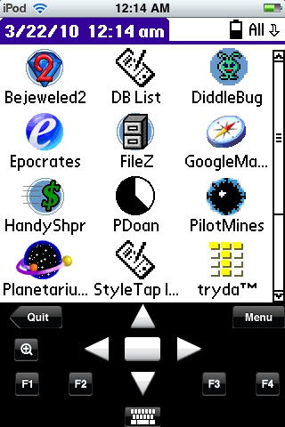 Компания StyleTap выпустила эмулятор Palm OS для iPhone. Эмулятор позволяет запускать приложения предназначенные для процессора ARM, совместимые с версией Palm OS до 5.2. Поддерживает запись и воспроизведение аудио, виртуальные карты памяти, TCP/IP соединение, и многие другие функции. Стоимость программы 49.99$. Но любители Palm OS, мне кажется, будут готовы заплатить эти деньги за возможность использовать их любимую платформу. Конечно программа работает только на "взломанных" iPhone.
