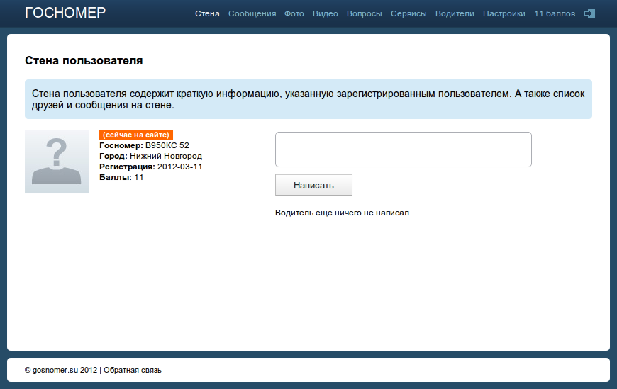 Пользовательская база сайта Госномер.su откровенно стартапского размера. Номера не проходят верификацию, так что можно регистрироваться под вымышленным или под чужим номером. То есть пока сайт почти бесполезен. Но это нормально, "Однокласники" тоже не сразу заполнились. Верификацию номеров на Госномер.su, разумеется, сделают, иначе проект загнётся. Если разработчики не будут халявничать, то проект выйдет на рабочий уровень. Можно будет написать владельцу машины, который каждый вечер занимает три стояночных места, и попросить так не делать. Можно будет спросить у бомбилы, про которого только номер запомнил, не находил ли он в машине твой утерянный зонтик. Можно будет пригласить на ужин блондинку, с которой вчера стоял на одном светофоре.