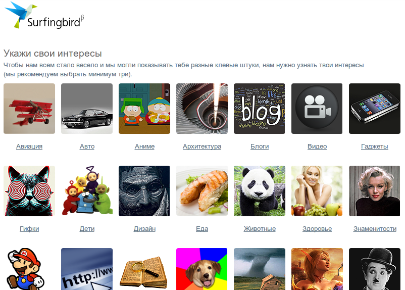 Не поручусь на сто процентов, но похоже, что и сам движок сайта оказался поинтеллектуальнее, чем у заокеанского предшественника. По крайней мере, уже сразу после регистрации Surfingbird показывает страницы, которые не только отлично соответствуют заявленным интересам, но и реально стоят того, чтобы их почитать.