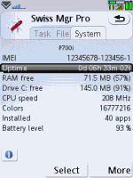 Разработчик программного обеспечения CellPhoneSoft обновил утилиту Swiss Manager для Symbian-коммуникаторов на базе платформы UIQ3. Swiss Manager - это пакет системных утилит, обеспечивающих функциональность менеджера задач, просмотрщика файлов, и монитора системы. Программа позволяет управлять запущенными приложениями и файлами, предоставляет такую информацию как данные о характеристиках устройства, степень загруженности процессора, свободной памяти и так далее. В новой версии Swiss Manager 1.60 добавлены новые команды для избранного, в том числе доступ в полно-экранном режиме, дополнительная информация о системе, поддержка для смартфона Motorola Z8, а также многие другие изменения, улучшения и исправления. Пакет предоставляется в виде бесплатной версии Swiss Manager Free и платной версии Swiss Manager Pro, у которой предусмотрен также демо-режим. Стоимость полной редакции Swiss Manager Pro составляет $24,95. Также предусмотрена версия утилит для мобильных устройств на базе платформы UIQ 2. Как обычно, в ближайшее время, демо-версию Swiss Manager 1.60 можно будет найти в разделе "Программы для КПК" на HPCru.