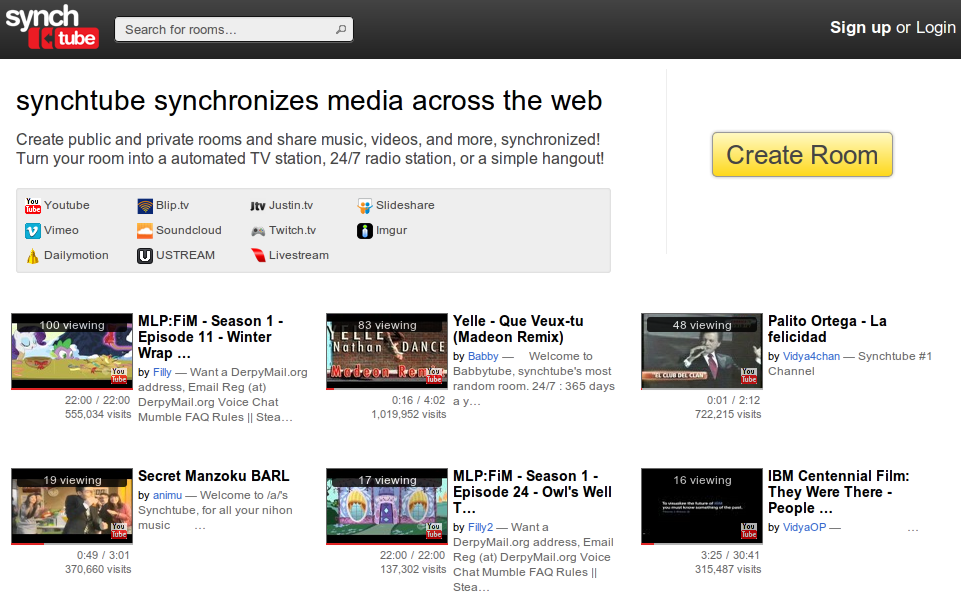 Сервис SynchTube - это то место, в котором пользователи могут вместе посмотреть фильм или какое-то другое видео. Для этого не обязательно садиться вместе перед экраном одного и того же компьютера. Даже не обязательно находиться на одном континенте. SynchTube поможет загрузить один и тот же ролик с одного и того же видеохостинга, да ещё и установит его на одну и ту же секунду у всех участников просмотра.