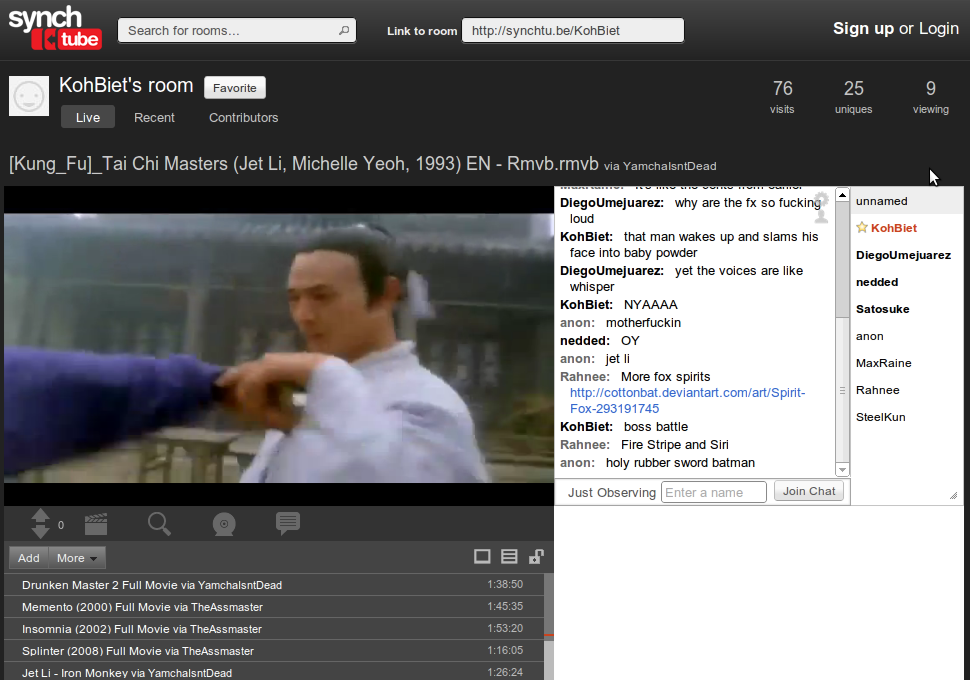 Разумеется, в мире давно уже есть такие вещи, как потоковое вещание в реальном времени. Тот же YouTube Live, например. Но такие вещи хороши для трансляций концертов, интервью и спортивных состязаний, а для просмотра любимого фильма в компании друзей больше подойдёт что-то вроде чат-комнаты, в которой ещё и видео показывается. Одно на всех.