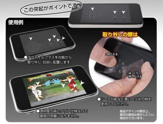 Устройства с сенсорными экранами очень быстро вытеснили устройства с кнопками. Но для игр иногда очень не хватает кнопочного управления. Японская компания Nosho-An выпустила кнопки для сенсорного экрана. Прозрачные кнопки расположены на прозрачной же подложке. Они наклеиваются на экран на то место, где осуществляется управление игрой. Предложенное производителем расположение хорошо подходит для игры Street Fighter IV. Возможно, для большей универсальности лучше было сделать отдельные кнопки, но производитель решил иначе.