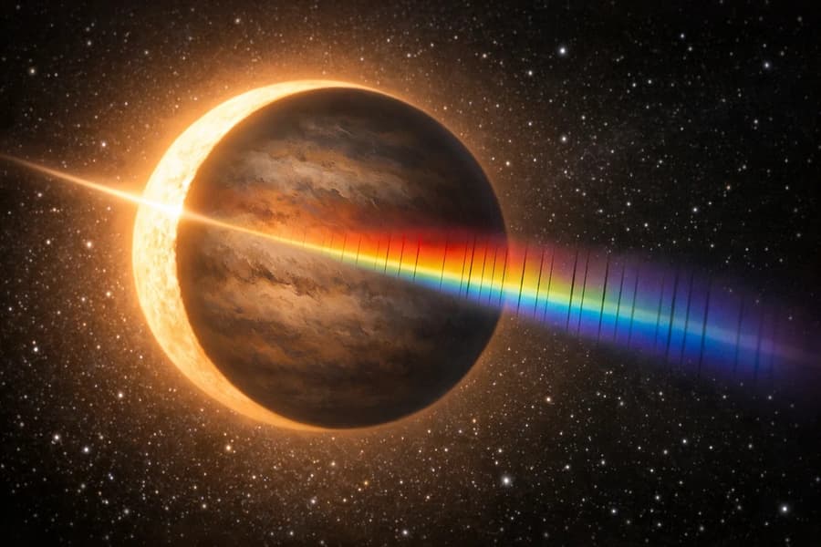 Астрономы с помощью космического телескопа «Джеймс Уэбб» (JWST) получили новые данные о составе атмосферы экзопланеты WASP-80 b и впервые обнаружили в ней сероуглерод. Результат указывает на более сложную химию серы в атмосферах газовых гигантов, чем предполагалось ранее.