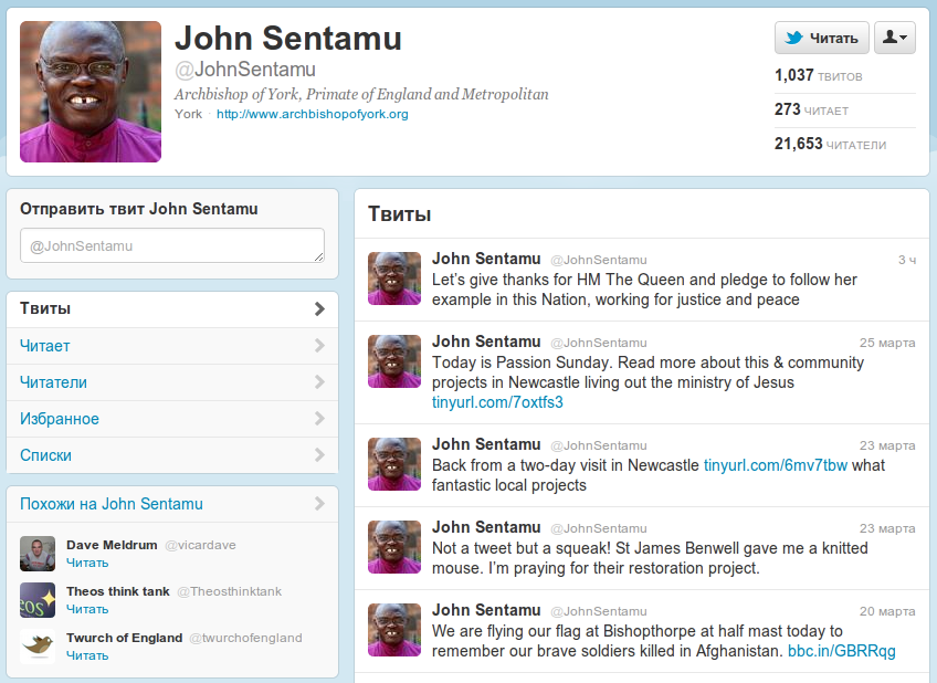 Твиттер архиепископа Йоркского