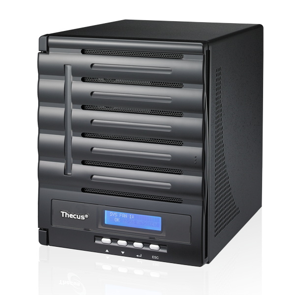Компания Thecus выпустила новый сетевой сервер на 5 дисков - N5550. Как отмечает компания, в разработке N5550 были использованы такие технологии как агрегация каналов, LCM дисплей, USB 3.0, функция построения различных конфигурациий RAID (RAID 0, 1, 5, 6, 10 and JBOD) и так далее.