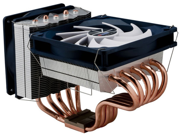 Ассортимент компании Titan Technology пополнился новой системой охлаждения для CPU в фирменной линейке Sibera, отличающейся весьма необычным ассиметричным дизайном. Конструктивно новинка под названием TTC-NC55TZ(RB) состоит из медной контактной базы с никелевым покрытием и квинтета медных теплоотводных трубок, а также двух блоков алюминиевых ребер. При этом один из радиаторов располагается параллельно плоскости материнской платы, а второй – перпендикулярно ей.