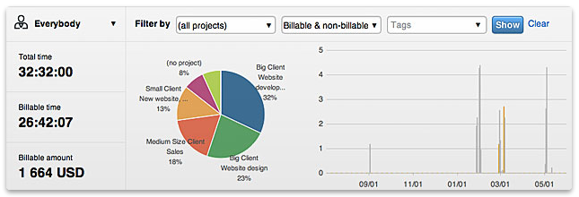 Ещё на сайте Toggl есть много всяческой аналитики, которая настолько избыточна, что даже удобна.