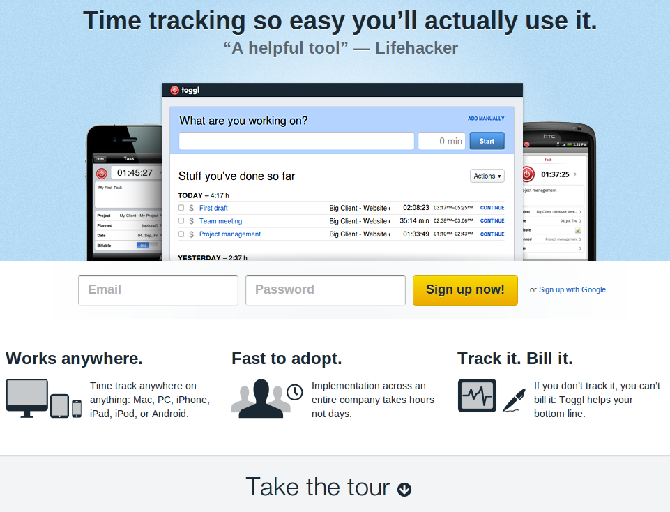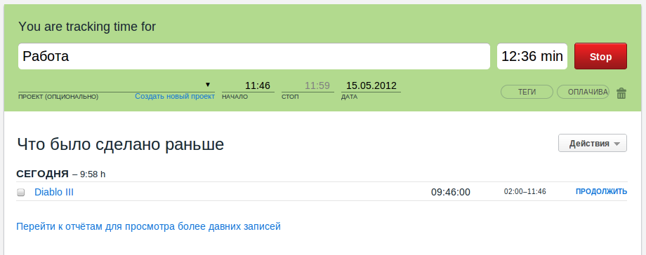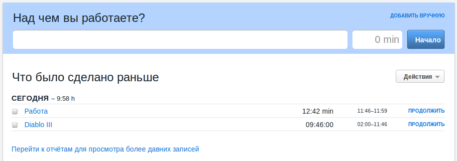 Представляю, как это выглядит со стороны: все дружно рубятся в Diablo III, а я тут со своим "Сайтом дня", но раз есть день, то должен быть и его сайт. Сегодня это сайт лучшего в мире таймтрекера Toggl.