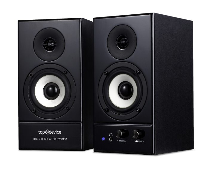 Акустика TopDevice TDS-400 обещает сбалансированное звучанием низких и высоких частот в диапазоне от 90 до 20 000 Гц. Каждая колонка оборудована 3-дюймовым широкополосным динамиком, прикрытым декоративной панелью. Пользователи, проводящие много времени в Skype, оценят наличие у акустической системы не только выхода на наушники, но и микрофонного входа.