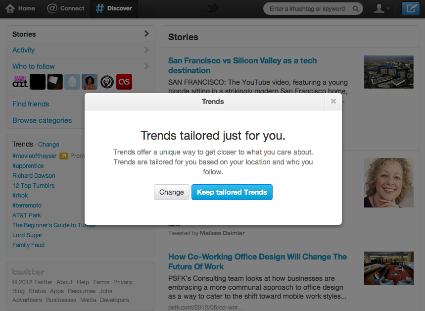 Персонализированные тренды Twitter зависят от местонахождения и подписок