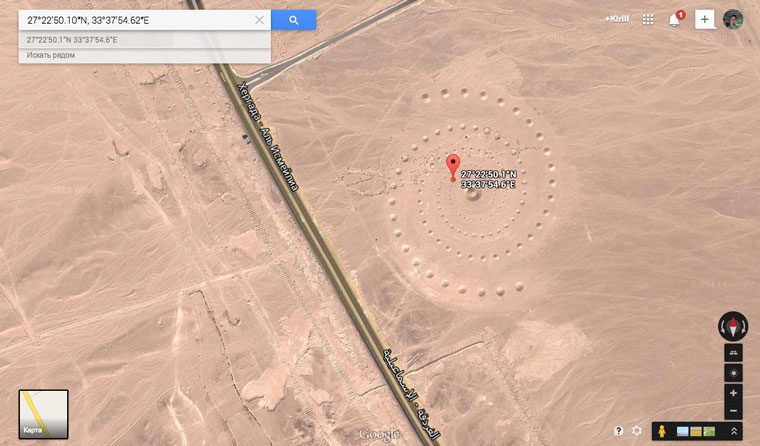 В паре километров от курорта Эль-Гуна в Египте рядом с шоссе есть спиралевидный знак, созданный группой художников D.A. ST.