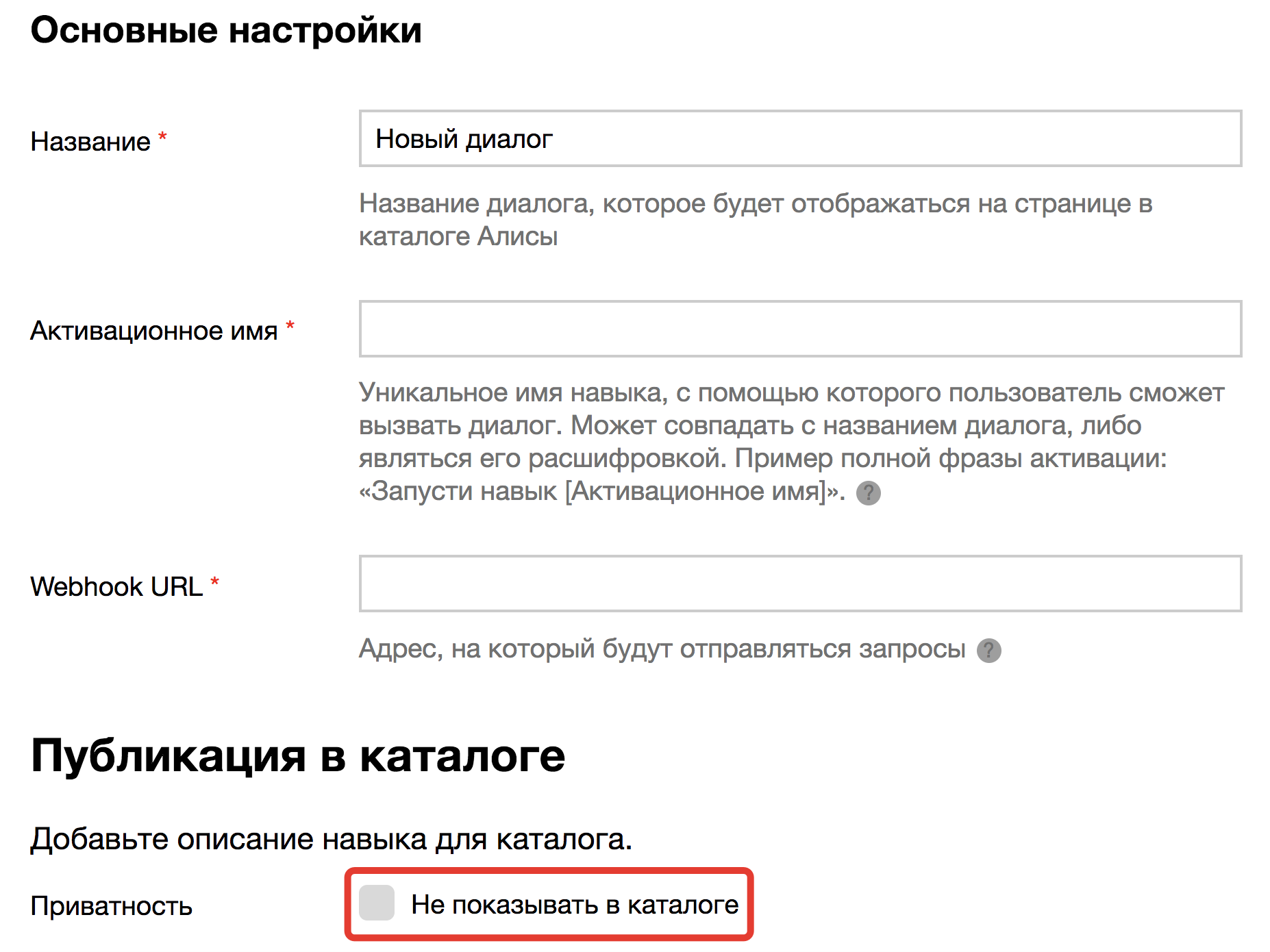 В Яндекс.Диалогах появилась возможность создавать приватные навыки, то есть навыки, которые после публикации не отображаются в Каталоге. Запустить такой навык можно только по активационной фразе, которую знает его создатель.