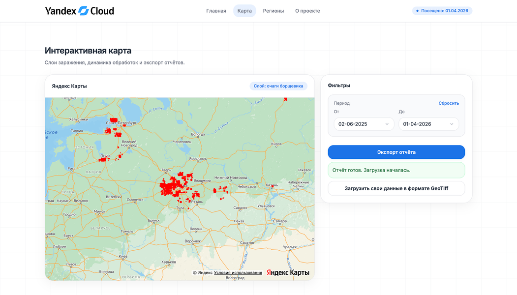 Иллюстрация: ЯндексСервис позволяет загружать спутниковые снимки в формате GeoTIFF, после чего алгоритм выделяет зоны произрастания борщевика. За распознавание отвечают технологии компьютерного зрения Яндекса. В 2026 году Яндекс намерен масштабировать сервис, обучив его отслеживать и другие инвазивные растения, например, эхиноцистис лопастный и два вида золотарников: канадский и гигантский. Также в планах — создание единой карты очагов заражения борщевиком на основе уже собранных данных.