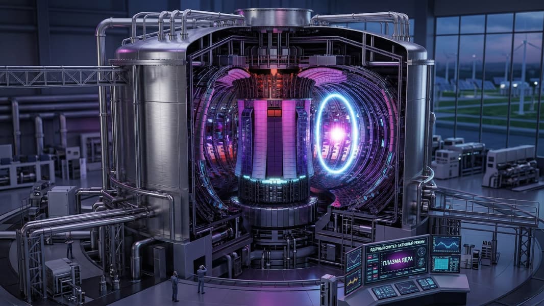 Изображение сгенерировано Nano BananaРечь идет о защите так называемой первой стенки термоядерного реактора — внутренней поверхности, которая испытывает воздействие высокотемпературной плазмы и тепловые нагрузки до 10 мегаватт на квадратный метр. Для таких условий вольфрам считается одним из лучших материалов благодаря своей прочности и температуре плавления выше 3000 °C.