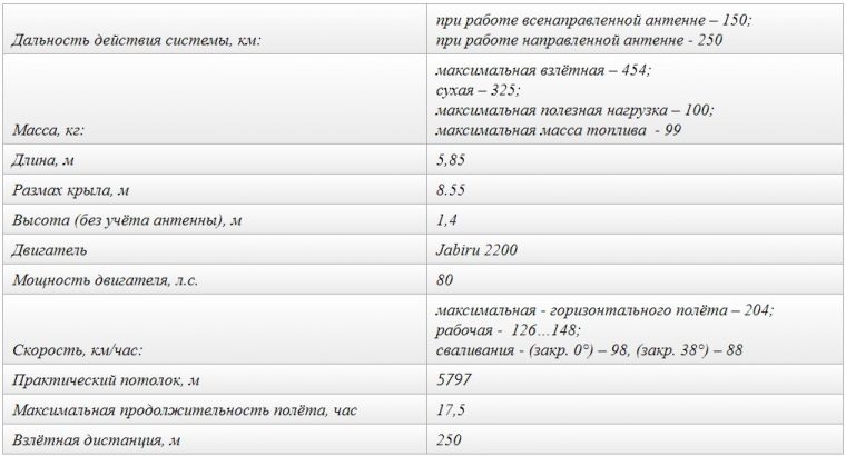 «Орлан-10» весит 14 кг и способен до 16 часов находиться в воздухе. Работает он от двигателя на 95-м бензине и развивает скорость до 150 км/ч.