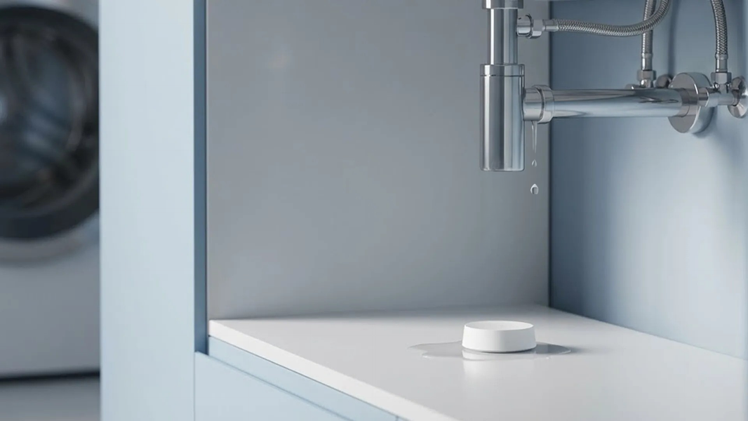 Иллюстрация: ЯндексДатчик температуры и влажности обзавёлся экраном и ножкой, что позволяет устанавливать его не только на стену, но и на поверхность. Датчик протечки получил новый корпус и фиксирует появление воды, отправляя уведомления пользователю.