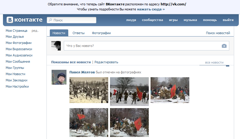 В официальном Twitter-е социальной сети ВКонтакте появилось сообщение об окончательном переезде на международный домен http://vk.com. И приведен скриншот с извещением об изменении адреса, которое будут видеть пользователи социальной сети.