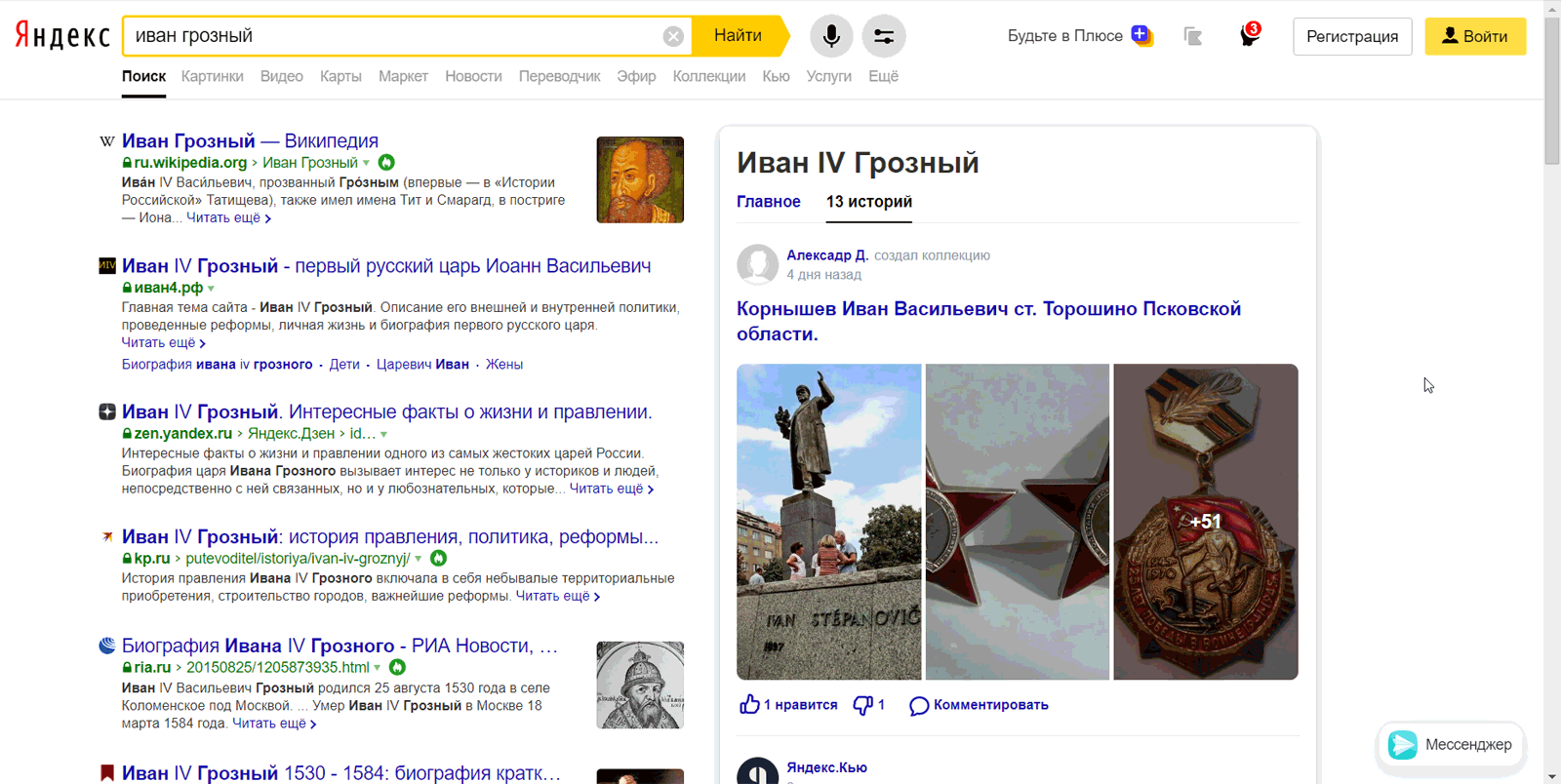 Когда мы ищем информацию об известном человеке или какой-нибудь достопримечательности, одной Википедии недостаточно — хочется посмотреть картинки, видео или почитать свежие новости. Поэтому мы решили добавить в ответ поиска интересный и обсуждаемый контент, автоматически собранный с разных сервисов Яндекса: Кью, Коллекций, Новостей, Кинопоиска, Видео и так далее.