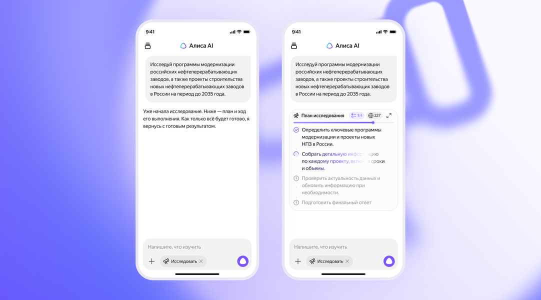 Все пользователи «Алисы AI» Яндекса получили доступ к новому ИИ-агенту «Исследовать»