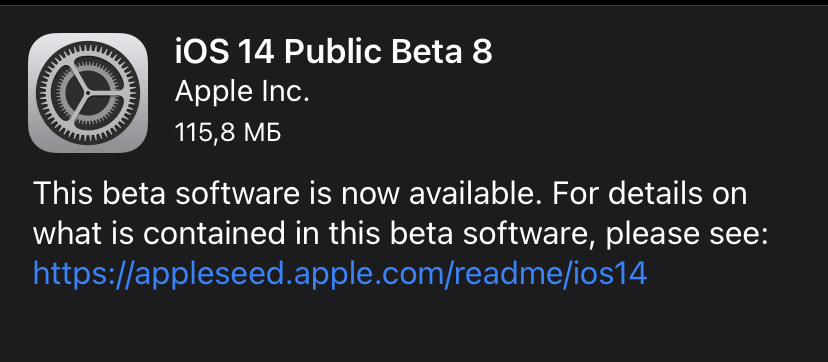 Размер прошивки — около 100 МБ. Скачать iOS 14 beta 8 можно уже сейчас «по воздуху».