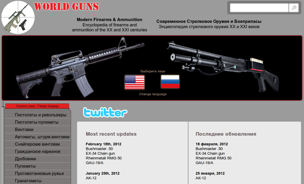 Сегодня сайтом дня объявляется онлайновая энциклопедия стрелкового оружия World Guns, являющаяся частью любительского проекта Guns.ru.