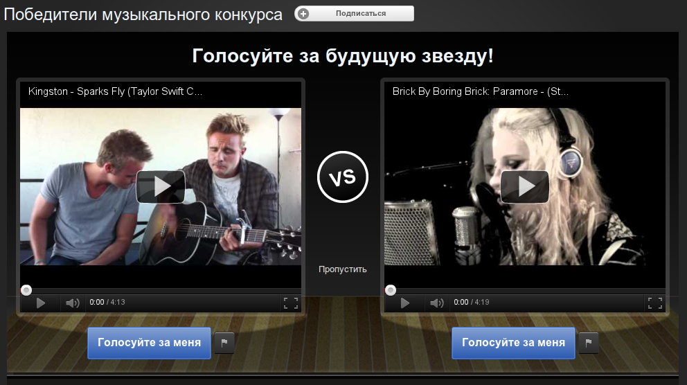 Очень показательно, что для голосования за видео совсем не обязательно его просматривать. Можно сразу нажать кнопку и ваш голос зачтётся. Например, если один ролик проиллюстрирован котёнком, а другой - скамейкой в парке, то можно смело жать кнопку, выбирая самое "милое" методом по умолчанию. Хотя возможно, что котёнка в ролике расчленяют, а у скамейки выгуливают милого малыша. Это похоже на голосование за фотки, но с элементом неизвестности.