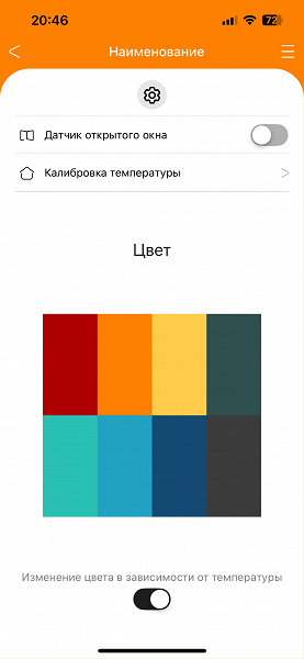В разделе настроек можно посмотреть, как будет меняться цвет «шапки» приложения и цифр текущей температуры, а также отключить функцию изменения цвета в зависимости от температуры.