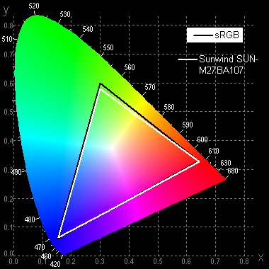 В мониторе есть профиль sRGB, включение которого корректирует охват до границ соответствующего пространства (но настроить цветовой баланс уже нельзя):