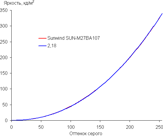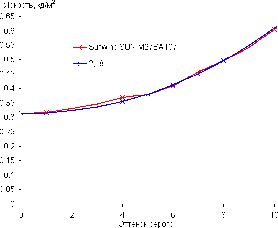 Аппроксимация полученной гамма-кривой дала показатель 2,18, что очень близко к стандартному значению 2,2, при этом реальная гамма-кривая мало отклоняется от аппроксимирующей степенной функции:
