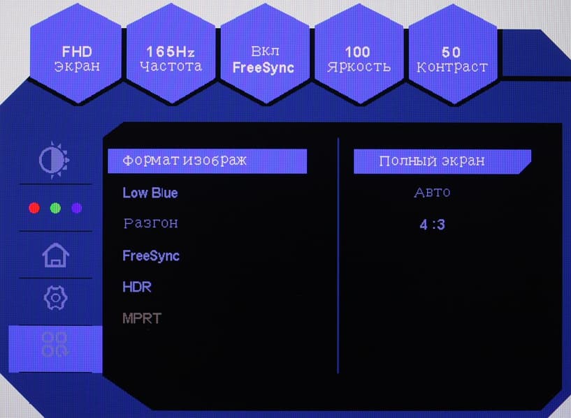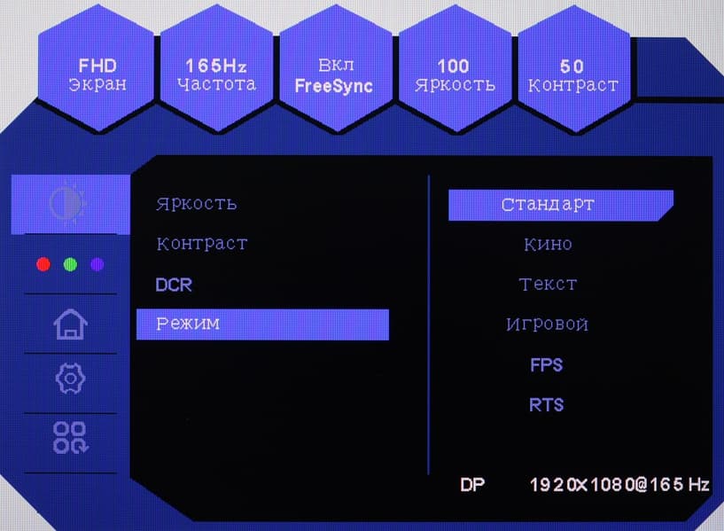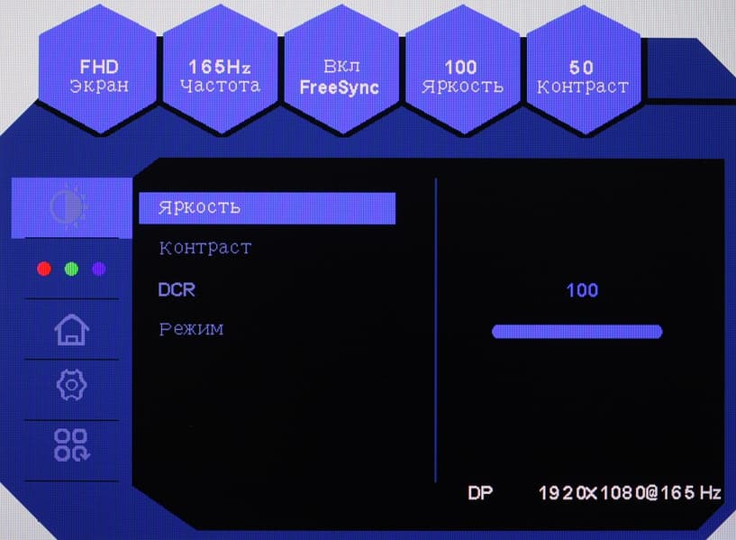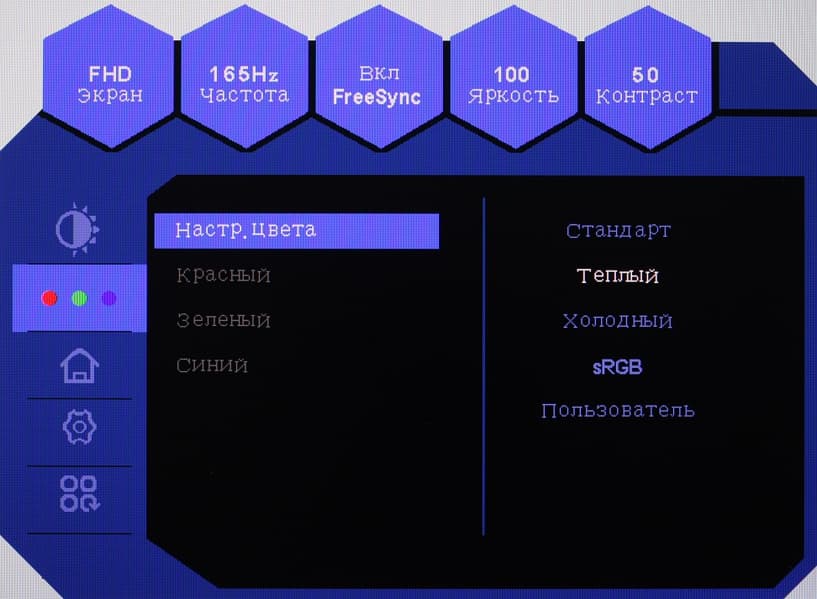 Настроек, влияющих на яркостный и цветовой баланс, немного, что для игрового монитора ожидаемо.