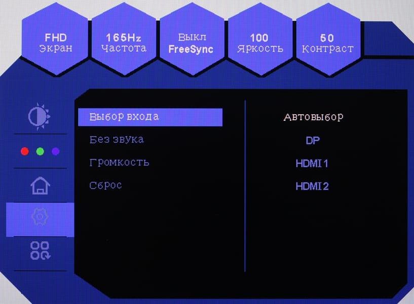 Только при подключении к компьютеру по DisplayPort поддерживается разрешение до 1920×1080 при 165 Гц кадровой частоты в режиме 10 бит на цвет на вход и без потери цветовой четкости. При подключении по HDMI в разрешении 1920×1080 можно получить максимум 144 Гц кадровой частоты при 8 бит на цвет.